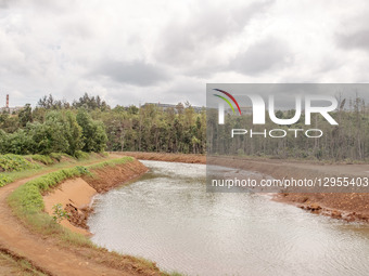 "A brown river is near a nickel mining company in Kawasi vill..."