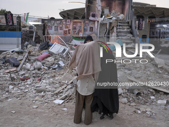 A veiled woman who is a member of a group known as the Daughters of the Revolution speaks with a young Iranian woman who does not wear a mandatory headscarf in front of a section of a residential building targeted during Israeli attacks amid the 12-day war, now displayed outside the City Theater building as an anti-war installation in downtown Tehran, Iran, on August 5, 2025. A group of religious women activists known as the ''Daughters of the Revolution'' holds gatherings in Tehran with the aim of promoting Islamic hijab. During these events, 313 unveiled or loosely veiled young women voluntarily choose to adopt the hijab and receive blessed headscarves from the shrine of Imam Hussein. This group now uses the emotional impact of the 12-day Iran-Israel war to encourage more youth, especially young women, to embrace the hijab.