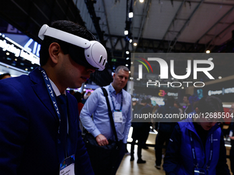 LAS VEGAS, USA - JANUARY 09: An attendee explores the Meta Quest 3 mixed reality headset seen at CES 2025 in Las Vegas, Nevada, USA, on January 9, 2025. Mixed and virtual reality technologies emerged as standout attractions at this year's event.