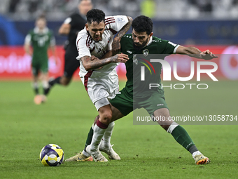 Edmilson Junior of Qatar and Abdullah Alshami of Syria are in action during the Group A FIFA Arab Cup 2025 match between Syria and Qatar at Khalifa International Stadium in Doha, Qatar, on December 4, 2025.