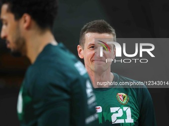 Adam Waczynski participates in a match of the Orlen Basket Liga between WKS Slask Wroclaw and Legia Warszawa in Wroclaw, Poland, on January 11, 2025.