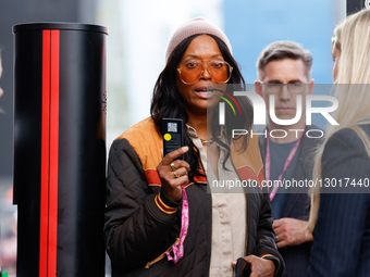 Aisha Tyler is in the paddock for the Formula 1 Heineken Las Vegas Grand Prix in Las Vegas, Nevada, on November 22, 2025.