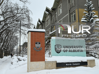 EDMONTON, CANADA - MARCH 29: A sign reading 'University of Alberta' in Edmonton, Alberta, Canada, on March 29, 2025.