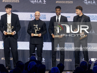 Alessandro Bastoni, Federico Dimarco, Denzel Dumfries, and Amir Rrahmani receive the award during Gran Gala Del Calcio AlC 2025 in Milan, Italy, on December 01, 2025.