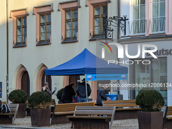 In Landshut, Bavaria, Germany, on February 1, 2025, the AFD Party, Alternative fur Deutschland, holds a 2025 Bundestag election campaign stand in the old town.