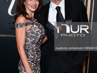 American yoga instructor, entrepreneur, podcaster, and author Hilaria Baldwin and Russian choreographer and dancer Gleb Savchenko arrive at the 2nd Annual Gurus Awards Presented by Gurus Magazine held at Cicada Restaurant and Lounge at Oviatt Building at The Olive in Los Angeles, California, United States.