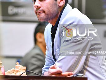 Indian GM Arjun Erigaisi participates in the 6th TATA Steel Chess India Tournament at Dhono Dhanyo Auditorium in Kolkata, India, on November 17, 2024.
