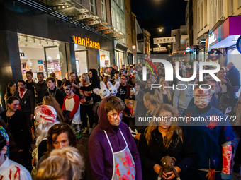 Around a hundred of zombies are taking the city center of Arnhem, during the Zombie Walk, on October 27th, 2022.