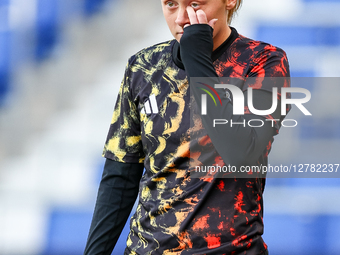 Freya Gregory of Newcastle United warms up during the WSL2 match between Birmingham City and Newcastle United at St Andrews @ Knighthead Park in Birmingham, England, on September 21, 2025.
