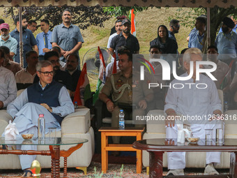 Manoj Sinha, Lieutenant Governor of Jammu and Kashmir, and Omar Abdullah, Chief Minister of India's Jammu and Kashmir region, participate in a rally as part of the celebrations to mark the 79th Independence Day during the 'Har Ghar Tiranga' (Tricolor in every house) campaign in Srinagar, Jammu and Kashmir, on August 12, 2025. India celebrates its 79th Independence Day on August 15, to mark independence from British rule on August 15, 1947.