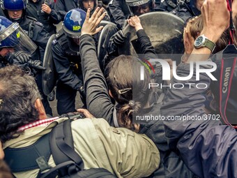 British riot police clashed with anti-capitalist protesters in running confrontations through the streets of central London on Tuesday June 11, 2013. Photo: Jerry Tremaine/NurPhoto