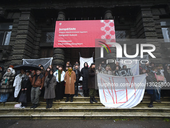 Students take part in a silent protest at the Hungarian University of Fine Arts in Budapest, Hungary, on November 25, 2025.
