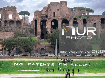 Climate activists rally outside the FAO building to ask governments for more real efforts and guarantees about forest and ocean preservation in Rome, Italy, on February 25, 2025.