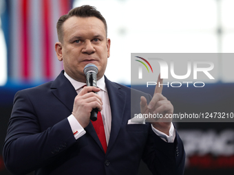 Dominik Tarczynski, a Member of the European Parliament from the Law and Justice party, participates in the Conservative Political Action Conference (CPAC) at ZEN.COM Expo in Jasionka, Poland, on May 27, 2025. The Conservative Political Action Conference (CPAC) is an event originating from the United States, organized by the American Conservative Union, where conservative activists and politicians meet every year. The event integrates conservatives from all over the world.