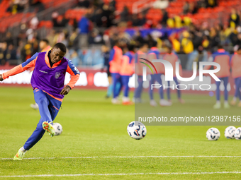 Willian Pacho of Ecuador warms up at the International Friendly match between Canada and Ecuador at BMO Field in Toronto, Ontario, Canada, on November 13, 2025.