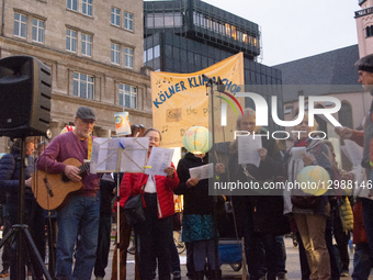 A hundred activists gather in front of Dom Cathedral and hold lanterns to protest against German climate policy not addressing the climate crisis in Cologne, Germany, on November 14, 2025, amid the COP30 climate summit in Brazil