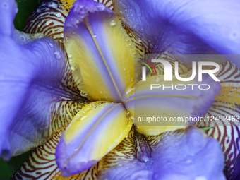 Close-up of bearded iris flowers bloom during the spring season in Markham, Ontario, Canada, on June 12, 2025.