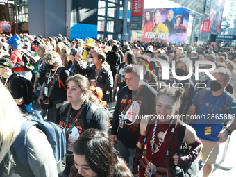 People wait to enter the New York Comic Con 2025 at the Jacob Javits Center in New York City, United States, on October 12, 2025. New York Comic Con is the East Coast's largest pop culture convention and the only one that takes place in the comic book, publishing, media, and licensing capital of the world, Gotham City.