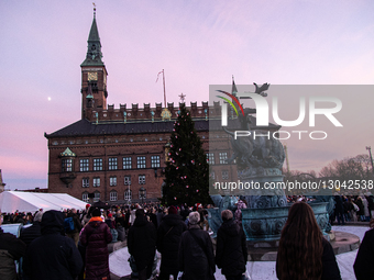 People attend the Christmas tree lighting ceremony on City Hall square in Copenhagen, Denmark, on November 30, 2025.