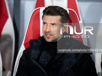 Luka Elsner, head coach of Cracovia, is seen during the game between KS Cracovia and Zaglebie Lubin in Krakow, Poland, on November 3, 2025, during the PKO BP Ekstraklasa, Polish football league match at Cracovia Stadium.