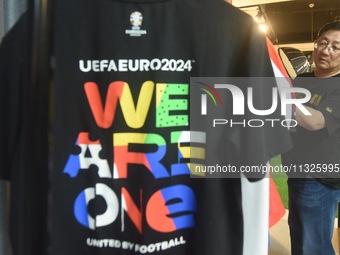 Customers are buying T-shirts of national teams participating in the Euro 2024 football Championship at a Euro 2024 themed pop-up store in Hangzhou, China, on June 13, 2024.