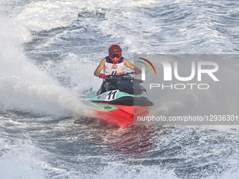 Martin Jr Doulik of the Czech Republic competes during the MOTO 2, Runabout GP1 of the UIM-ABP Aquabike Class Pro Grand Prix of Qatar at Mina Corniche, Old Doha Port in Doha, Qatar, on November 1, 2025.