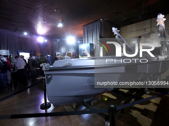 An unmanned surface vehicle (USV) is displayed at the exhibition of Ukrainian components for defense technologies during the Brave1 Components event, dedicated to the development of domestic production of components for unmanned systems and other defense technologies, in Kyiv, Ukraine, on December 3, 2025.