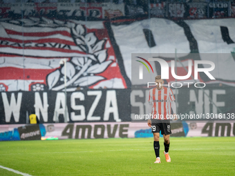 Dominik Pila plays during the game between KS Cracovia and Motor Lublin in Krakow, Poland, on November 22, 2025, in the PKO BP Ekstraklasa, Polish football league match at Cracovia Stadium.