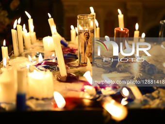 A girl places a candle during a vigil prior to the canonization of Dr. Jose Gregorio Hernandez and Sister Maria del Carmen Rendiles in Caracas, Venezuela, on October 18, 2025. Pope Leo XIV canonizes Venezuela's first saints, Dr. Jose Gregorio Hernandez and Sister Maria del Carmen Rendiles, during a ceremony held in St. Peter's Square on October 19, 2025.