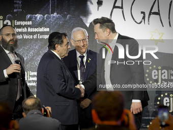 Elon Musk is seen shaking hands with Joel Mergui in Cracow, Poland on 22 January, 2024. Earlier that day he visited the Nazi death camp in Auschwitz. Elon Musk also spoke about hate speech on social media and said that the X platform, formerly known as Twitter has the least amount of anti-Semitism of all platforms specifically TikTok which he says has five times more hate speech than X, according to Musk.