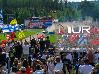 Kalle Rovanpera and co-driver Jonne Halttunen of the team Toyota Gazoo Racing WRT drive the Toyota GR Yaris Rally1. They face the 4th day of the race during the FIA World Rally Championship WRC Secto Rally in Jyvaskyla, Finland, on August 3, 2025.