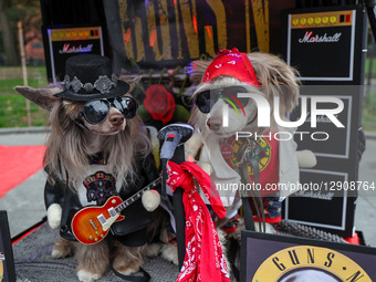 First place goes to these individuals dressed as Guns N' Roses as they pose for a photo during the Washington Square Park Halloween Dog Parade in New York, N.Y., on October 25, 2025.