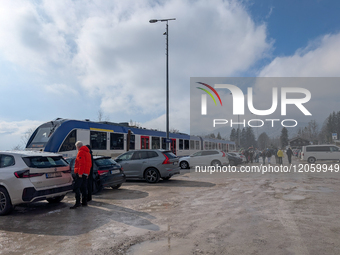 The railway station is in Gmund at Lake Tegernsee in Gmund, Tegernsee, Upper Bavaria, Bavaria, Germany, on February 15, 2025.