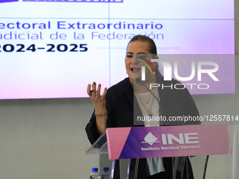 The president of Mexico's National Electoral Institute (INE), Guadalupe Taddei Zavala, participates in a regular session for the review of the election of the Judicial Branch in the Session Room of the National Electoral Institute in Mexico City, Mexico, on June 15, 2025.