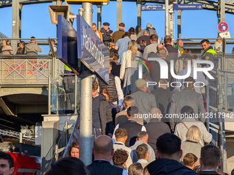 Visitors leave the Oktoberfest 2025 and wait for trains at Hackerbruecke Station in Munich, Bavaria, Germany, on September 26, 2025. The station is one of the busiest access points during the festival, with large crowds boarding S-Bahn trains.