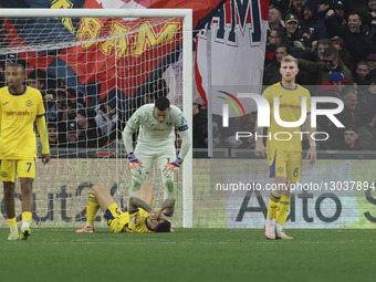 Hellas Verona players express disappointment after Morten Thorsby of Genoa CFC scores a goal during the Genoa CFC vs Hellas Verona FC, 13th Serie A Enilive 2025-26 game at Luigi Ferraris Stadium in Genova, Italy, on November 29, 2025.