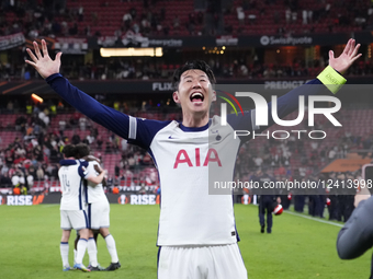 Heung-min Son left winger left-back of Tottenham and Korea South celebrates the victory after winning the UEFA Europa League Final 2025 between Tottenham Hotspur and Manchester United at Estadio San Mames on May 21, 2025 in Bilbao, Spain.