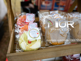 The Annual Norfolk Holiday Marketplace at Town Point Park along the Downtown Norfolk Waterfront in Norfolk, United States, on December 6, 2025, sees attendees drinking hot chocolate, watching an ice sculpture being created, and Santa granting Christmas wishes.