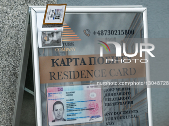 KRAKOW, POLAND – DECEMBER 1: An advertisement in Ukrainian offering assistance with residence card applications is seen outside an office in Krakow, Poland, on December 1, 2025.
