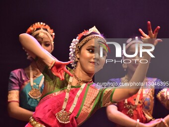 Dancers perform the Indian classical dance called Bharatanatyam during the Classical Dance Festival organized by Antara Kalakendra in Nagaon District, Assam, India, on November 30, 2025.