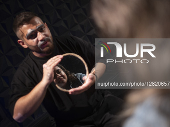 An Iranian actor performs with his audience in an interactive performance, The 257, in the Blackbox theater hall in Iran Mall mega-complex, situated in Tehran's most western 22nd district, Iran, on October 1, 2025. The interactive performance ''257'' with an audience-centered approach attempts to create an internal dialectic between the actor and the audience. This performance confronts the audience with itself before any other subject, whether it be excitement or storytelling.
