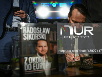 KRAKOW, POLAND - NOVEMBER 25: Poland's Foreign Minister Radoslaw Sikorski signs his new book 'Z okopu do Europy' ('From the Trench to Europe') during an author event at the Pod Jaszczurami club in Krakow, Poland, on November 25, 2025. The book offers a broad panorama of his experiences, combining war reporting, analytical essays and personal diplomatic reflections while tracing key events from Afghanistan and Iraq to Central Europe and contemporary international tensions.