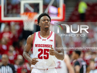 Wisconsin Badgers guard John Blackwell (25) plays during a game against the Northern Illinois Huskies at the Kohl Center in Madison, Wisconsin, on November 7, 2025.