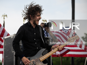 Dropkick Murphys guitarist Kevin Rheault performs with the band at a rally for veterans on the 81st anniversary of D-Day, in Washington, D.C., U.S., on, June 6, 2025. Demonstrators demanded accountability for elected officials and an end to funding cuts and other actions that reduce services and benefits for veterans.