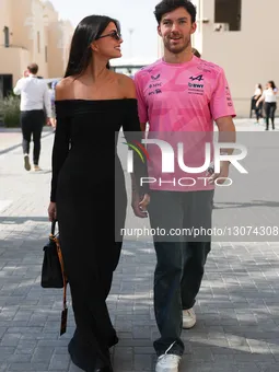 Kika Cerqueira Gomes and Pierre Gasly of Alpine ahead of the Formula 1 Abu Dhabi Grand Prix at Yas Marina Circuit in Abu Dhabi, United Arab Emirates on December 7, 2025.