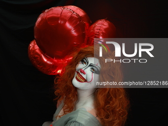 Cosplayer Dominique from Florida dresses as Pennywise for New York Comic Con at the Javits Center in New York City, on October 11, 2025.