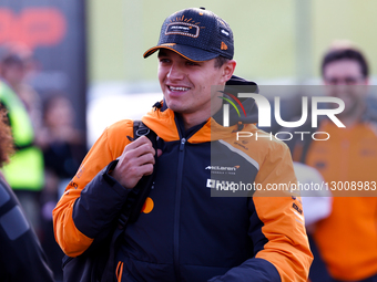 "Lando Norris arrives at the paddock for the practice race ah..."