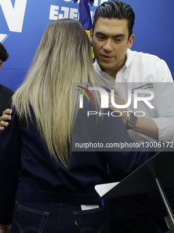 Jorge Romero, president of the National Action Party (PAN), the current opposition political party in Mexico, and Daniela Aguilar, a youth leader of the PAN, distance themselves from the violent events at last Saturday's Generation Z march during a press conference. They condemn the violence perpetrated by Mexico City police officers against the attendees, pointing to the Black Bloc as the alleged perpetrators of the violence against the citizen mobilization in Mexico City, Mexico, on November 19, 2025.