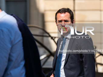 Christophe Bechu, Minister for Ecological Transition, is at the Elysee Palace at the conclusion of the Paris 2024 Olympics in Paris, France, on August 12, 2024.