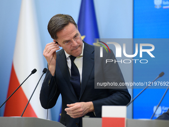 NATO's Secretary-General Mark Rutte addresses the media in a press conference with Polish Prime Minister Donald Tusk after talks in Warsaw, Poland, on March 26, 2025. The main topic of the talks is security on the eastern flank of NATO amidst the ongoing Russian aggression on Ukraine, hybrid warfare by Putin's ally, Alexander Lukashenko, on the Polish-Belarusian border, and the ongoing peace talks between the United States of America, Ukraine, and Russia.